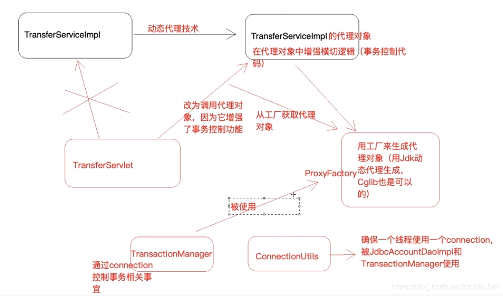 private TransferService transferService = (TransferService) proxyFactory.getJdkProxy(BeanFactory.getBean("transferService")) ;